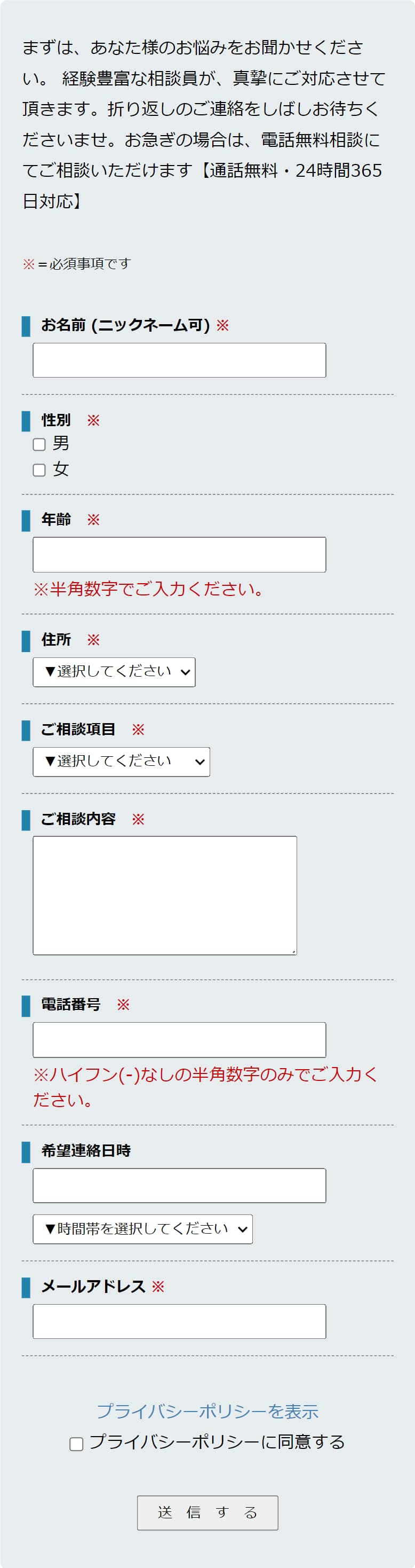 匿名無料相談フォームを入力